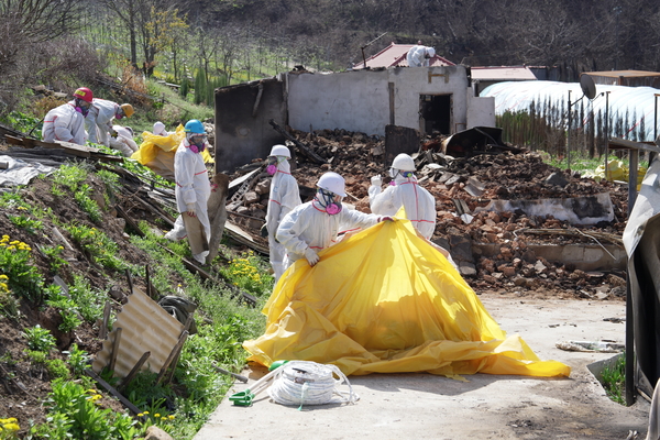 한편, 주택철거에 포함되지 않은 화재폐기물 중 5톤 미만은 일시적 다량생활폐기물 수수료 감면을 통해 적극 수거하고, 5톤 이상은 임시 적환장으로 운반하여 선별 처리할 예정이다.