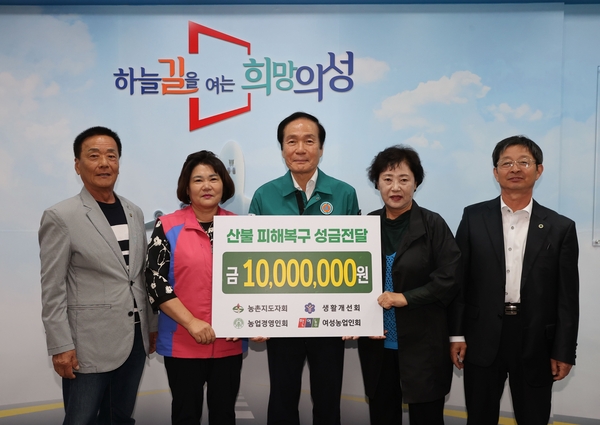 특히 성금을 기탁한 농업인 단체장 중 한 명은 이번 산불로 본인 또한 큰 피해를 입은 것으로 알려졌지만, 자신의 어려움보다 지역 사회의 고통을 먼저 생각하며 기부에 참여해 주위를 더욱 감동시켰다.