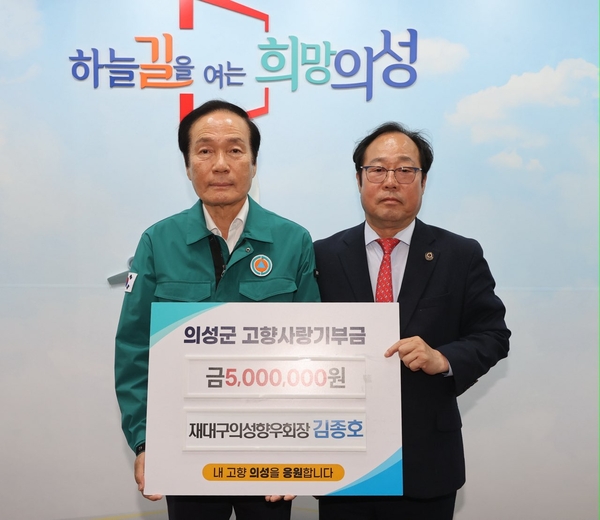 김주수 군수는 “고향의 어려움에 함께해주신 김종호 재대구 의성향우회장에게 깊이 감사드린다”며 “기탁해주신 성금은 피해 주민의 일상 회복을 위해 소중히 사용하겠다”고 말했다.
