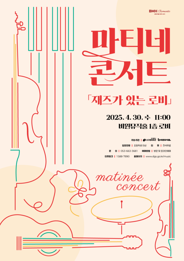 관람은 초등학생 이상, 전석무료로 진행되며, 예매는 지난 25일 오전 9시부터 1인 2매까지 온라인과 방문예매가 동시에 진행된다. 50석 선착순 비지정 좌석으로 예매가 이뤄지며, 자세한 사항은 비원뮤직홀 홈페이지(https://www.dgs.go.kr/music)를 참고하거나 비원뮤직홀(053-663-3681)로 문의하면 된다.