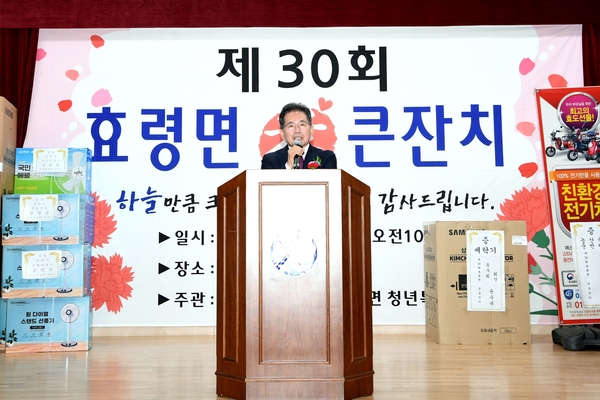 | ▲ 김진열군수가 효령면 어버이날 행사장에서 인사 말을 하고있다. | ||