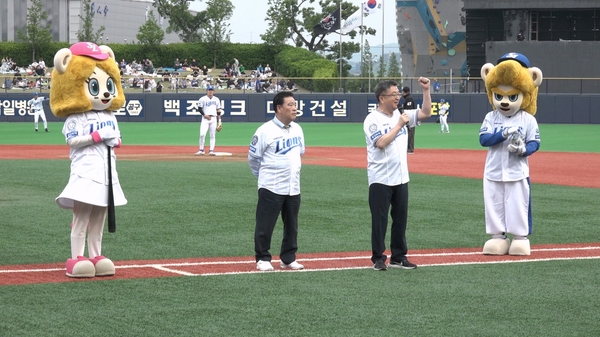 - 장상길 부시장 시구와 이재진 시의회 부의장 시타로 시작…삼성 5-3 승리