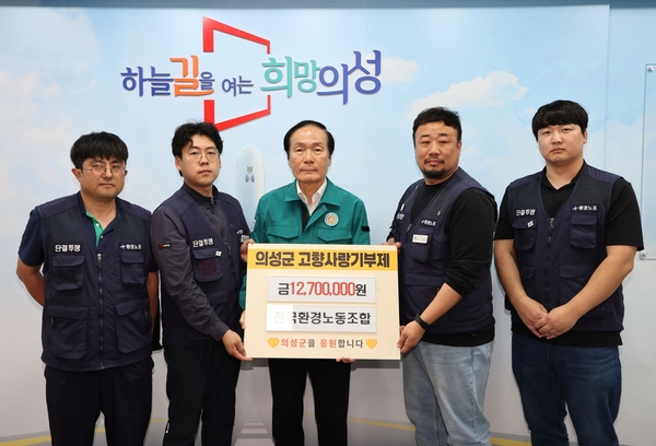 김주수 군수는 “의성군 발전을 지속적으로 기여해주고 있는 전국환경노동조합에 깊이 감사하다. 며 기부해 준 성금은 피해 이재민들의 회복과 지역 복구에 큰 도움이 될 것이다”라고 말했다.