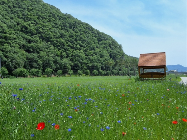 수레국화는 ‘행복감’이라는 꽃말을 가진 꽃으로 바람에 흔들리는 푸른 꽃잎은 마치 들판 위의 바다를 연상케하며 관광객들에게 깊은 힐링과 감동을 선사하고 있다.