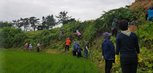 | ▲ 의성군 관계자들이 가시박 제거작업 하고있다. | ||