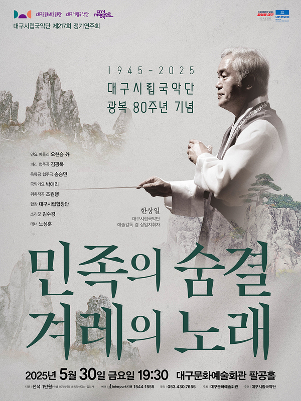 시립국악단 한상일 예술감독 겸 상임지휘자는 “이번 연주회는 광복 80주년의 의미를 되새기며 기획됐다. 민족정신을 담은 아리랑 메들리와 시립합창단과 함께하는 ‘천둥소리’는 특히 우리 음악의 전통성과 우수성을 잘 드러낸 작품으로 우리 음악 속에 담긴 민족정신을 되새겨 볼 수 있을것”이라고 기획 의도를 밝혔다.