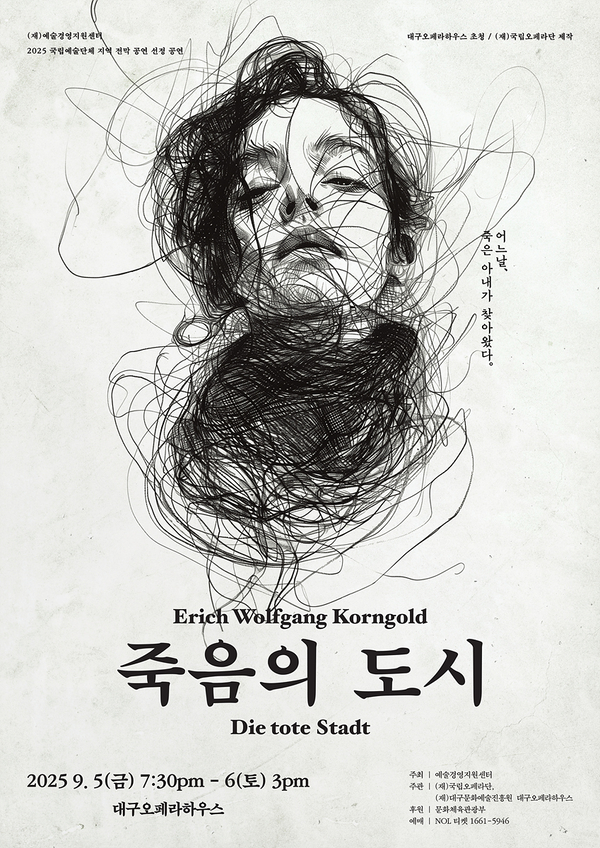 에리히 볼프강 코른골트의 ‘죽음의 도시’는 2024년 국립오페라단의 프로덕션이며 ‘2025 국립예술단체 지역 전막 공연 선정’ 작품으로 대구오페라하우스를 찾는다. 오스카상을 두 차례나 수상하고 미국 할리우드 영화음악계의 독보적인 존재인 천재 작곡가 코른골트가 작곡한 오페라로 1920년 초연부터 관객들의 큰 사랑을 받은 작품이다.