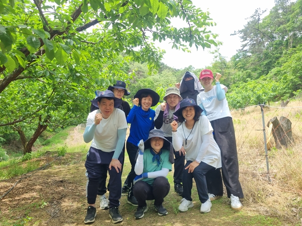 이날 간단한 교육을 받은 후 곧바로 복숭아 적과 작업으로 구슬땀을 흘리며 농가에 힘을 보탰다.