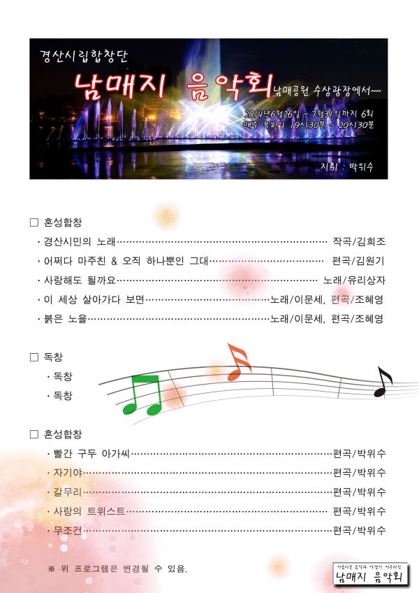 ∙장 소: 남매공원 수상 광장 ∙ 주 관: 경산시립합창단