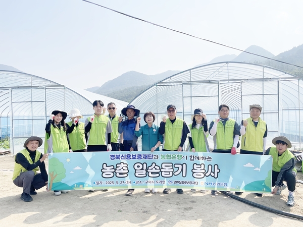 ▲ 경북신용보증재단과 농협은행 구미시지부 직원들이 농촌 일손돕기에 앞서 기념촬영을 하고 있다. 경북신보 제공 경북신용보증재단과 농협은행 구미시지부가 27일 일손 부족으로 어려움을 겪고 있는 구미시 도개면 일대 농가를 찾아 농촌일손돕기 봉사활동을 실시했다. 이날 일손돕기에는 경북신용보증재단과 농협은행 구미시지부 임직원 12명이 참여해 메론 순치기 작업 등을 진행했다. 김중권 이사장은 "영농철을 맞아 농협은행과 함께 일손돕기에 참여했다"며 "앞으로도 농가일손돕기, 결식우려 노인 무료급식 봉사 등 활동을 통해 도내 곳곳에 임직원들과 함께 따뜻한 손길을 건네겠다"고 말했다 .