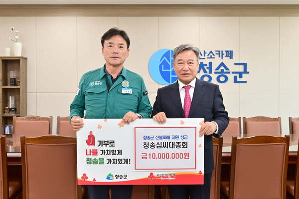 윤경희 청송군수는 “지역의 어려움을 함께 나누며 도움을 주신 모든 분들께 깊이 감사드린다.”며, “기부해주신 성금과 물품은 산불 피해 복구와 이재민 지원에 소중하게 사용하겠다”라고 전했다.