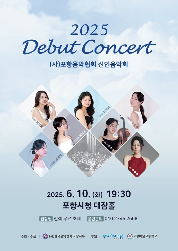 ‘(사)한국음악협회 포항지부’(지부장 김이영)가 주최·주관하고 포항시와 포항예술고등학교가 후원하는 ‘2025 포항 신인음악회’가 10일 오후 7시 30분, 포항시청 대잠홀에서 개최된다.