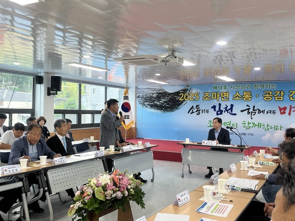 이날 간담회에는 조마면을 이끄는 각 단체장과 임원진, 마을 이장 등 주민 50여 명이 참석했으며, 참석자들은 정겨운 인사와 웃음이 오가는 분위기 속에서 시정 운영에 대한 다양한 의견을 허심탄회한 대화로 풀어나갔다.