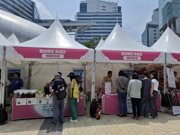 이번 행사는 서울시 마포구 상암문화광장에서 의성군을 포함한 산불피해지역 7개 시·군(영남권)이 참여해 각 지역의 농특산물을 서울 시민에게 직접 소개하고 판매하는 자리다.