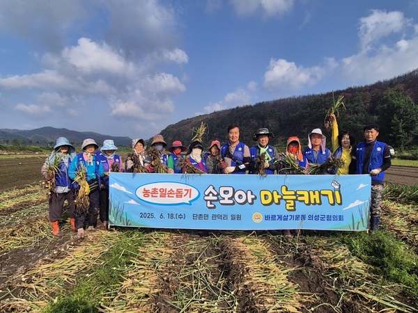 이날 지난 3월 산불 피해로 일손 지원이 절실한 마늘농가가 어려움을 겪고 있는 가운데 협의회원들은 무더운 날씨에도 아랑곳하지 않고 마늘 수확과 운반 작업을 도우며 구슬땀을 흘렸다.