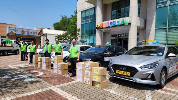 | ▲ 재구개인택시 의성향우회원들이 이재민에게 전달할 물품를 정리하고 있다. | ||