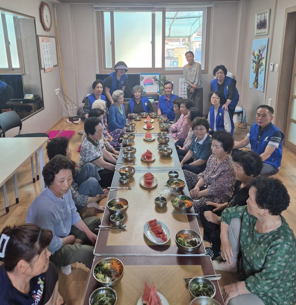 이날 회원들은 직접 재료를 손질하고 정성스럽게 비빔밥을 준비해 경로당 어르신들께 건강한 한 끼를 대접했으며, 본격적인 무더위에 앞서 어르신들의 안부도 여쭈며 소통하는 시간을 가졌다.