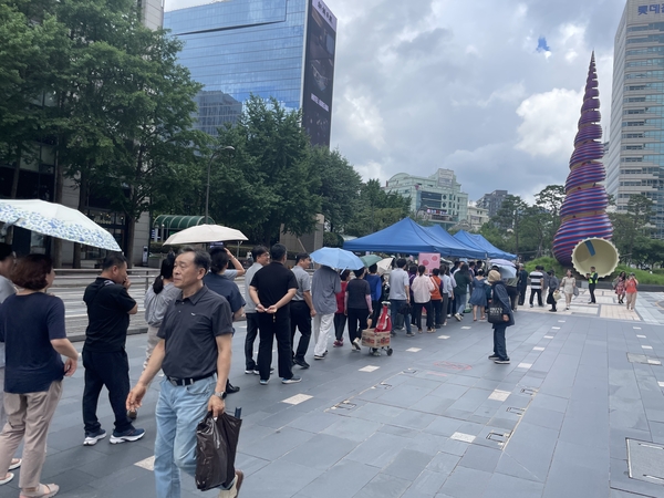서울의 주요 관광지인 경복궁, 광화문 인근 청계광장에서 진행된 이번 행사는 재경김천향우회와 김천시 농업기술센터 농식품유통과의 협조로 무더위 날씨 속에서도 청계광장을 찾은 3000여 명의 시민, 관광객 등으로 행사장은 인산인해를 이뤘다.