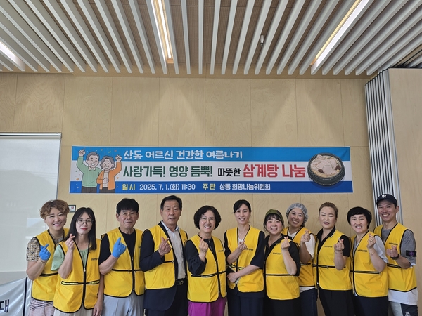 ▲ 대구 수성구 상동 지역사회보장협의체는 지난 1일 함장종합사회복지관에서 관내 어르신 200여 명을 대상으로 삼계탕 나눔 행사를 마치고 기념사진을 찍고 있다. 대구 수성구 제공 대구 수성구 상동 지역사회보장협의체는 지난 1일 함장종합사회복지관에서 관내 어르신 200여 명을 대상으로 삼계탕 나눔 행사를 열었다. 이날 협의체 위원들은 정성껏 준비한 삼계탕과 과일, 떡, 음료 등을 대접하며 따뜻한 마음을 전했다. 김정숙 위원장은 “연일 이어진 폭염으로 어르신들의 건강이 염려되었지만, 삼계탕을 맛있게 드시고 무더운 여름을 이겨내는 데 도움이 됐으면 좋겠다”며 “앞으로도 주민들의 건강과 복지 증진을 위해 세심히 살피고 노력하겠다”고 말했다.
