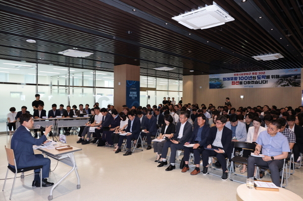시는 해양 융복합 산업의 거점인 이곳에서 지역의 미래 100년을 대비한 성장 전략을 모색하고, 주요 현안 사업을 집중 점검했다.