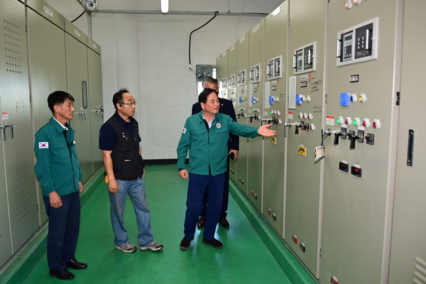 | ▲ 배낙호 김천시장이 배수펌프장을 방문해 현장을 점검하고 있다. 김천시 제공 | ||