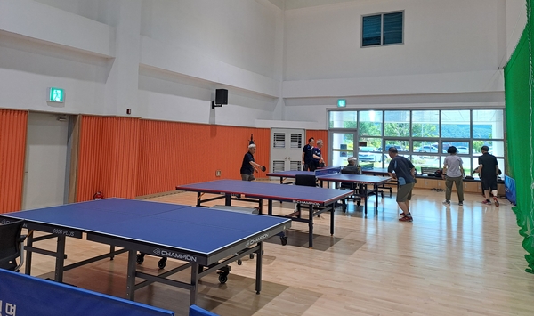 | ▲ 지역 주민들이‘금성온누리터’체육관에서 탁구연습을 하고 있다. | ||