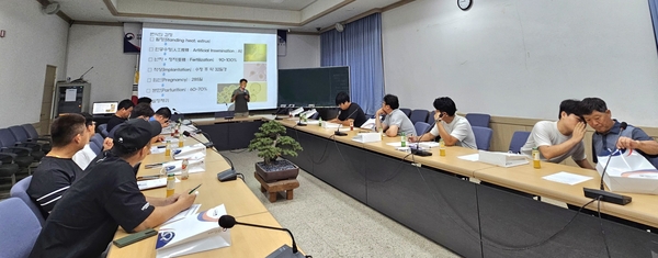 이번 교육은 경주시 한우협회 청년회원들을 대상으로 사전 기술 수요조사를 거쳐, 고온기 번식관리 기술을 중점 주제로 정하고 현장 상황에 맞춘 실질적인 교육 내용으로 구성됐다.