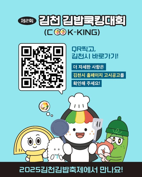 한편 김천시는 금상 수상작은 BGF리테일 후원으로 전국 CU편의점에 출시돼 홍보될 예정으로 본선 참가자 중(3팀 내외) 영업신고증을 갖춘 경우에는 2025 김밥축제에 참여할 수 있는 기회가 부여된다.