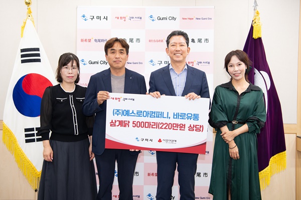 또 예스로아컴퍼니와 바로유통은 구미시장애인복지관에 삼계닭 500마리(220만 원 상당)를 후원했다. 이번 기탁은 장애인 이용자들의 건강한 여름나기를 돕고 무더위 속 체력 회복에 실질적인 도움이 될 것으로 기대된다.