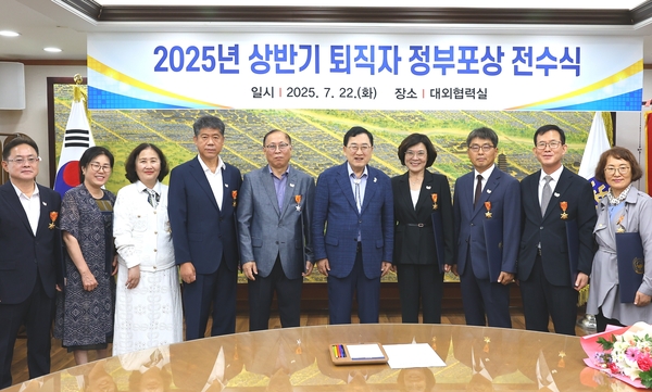녹조근정훈장은 △고현관 전 맑은물사업본부장 △남심숙 전 문화관광국장 △예병원 전 농림축산해양국장 △이규익 전 시민행정국장 △김재우 전 문화예술과장 △윤종권 전 사적관리사무소장 △서강 전 지역보건과장이 수상했다.