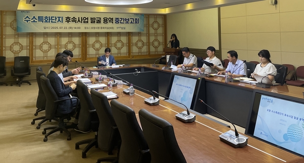 포항시는 22일 시청 중회의실에서 ‘수소특화단지 후속사업 발굴 용역 중간보고회’를 개최하고 수소특화단지를 중심으로 한 기업 유치 및 산업 생태계 조성 전략을 점검했다.