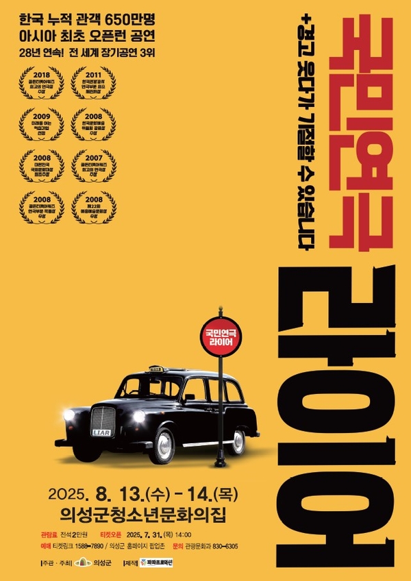 공연예매는 오는 31일 오후 2시부터 티켓링크(1588-7890)와 의성군 홈페이지 팝업존을 통해 가능하며, 문의는 관광문화과 (830-6305)로 하면 된다.