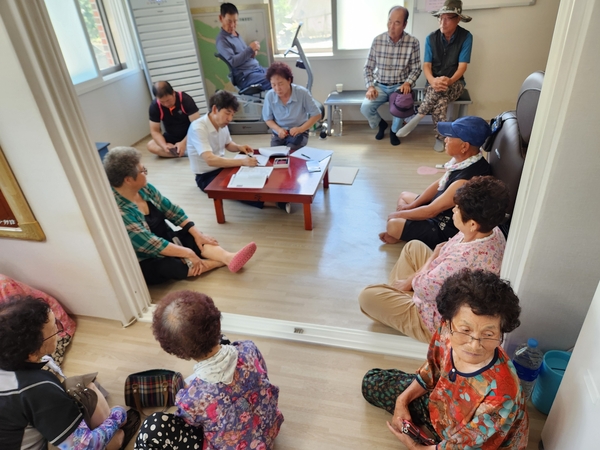 | ▲ 의성군 관계자가 경로당에서 거동이 불편한 취약계층을 대상으로 `민생회복 소비쿠폰` 신청를 받고 있다. | ||