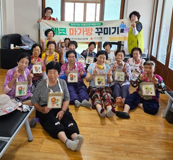 이번 프로그램은 어르신들의 정서적 안정과 여가 활동 지원을 위해 마련된 것으로 에코 마가방에 패브릭 마카로 직접 색칠하고 꾸미는 체험활동으로 진행된다.