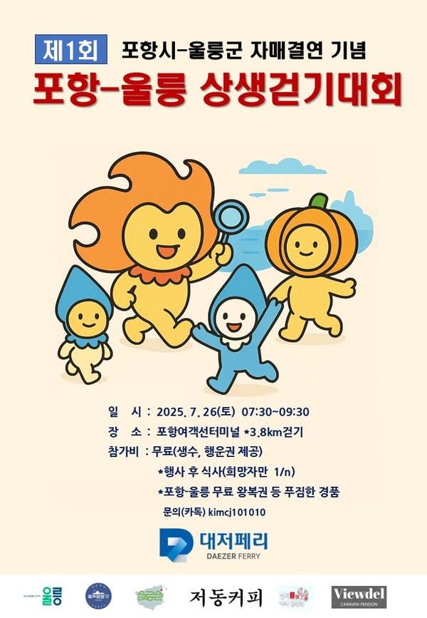 이번 걷기대회는 별도의 참가비 없이 포항여객선터미널에서 동빈내항을 따라 지난 1995년 대아고속카훼리호가 퇴역할 때까지 사용하던 과거 포항여객선터미널 부지까지 왕복 3.8km를 걷는 코스로 진행되며, 울릉향우회를 중심으로 포항시민과 타 지역민 등이 참가하게 된다.