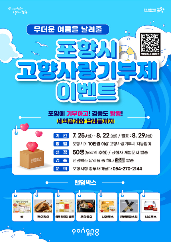 포항시, 고향사랑기부제 여름 특별 이벤트 실시