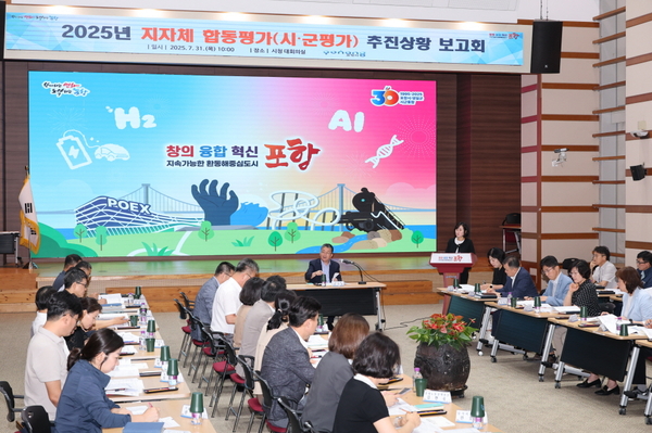 포항시는 31일 시청 대회의실에서 장상길 부시장 주재로 관련 부서장 등 40여 명이 참석한 가운데 ‘2025년도 정부합동평가(시·군평가) 추진상황 보고회’를 개최했다.