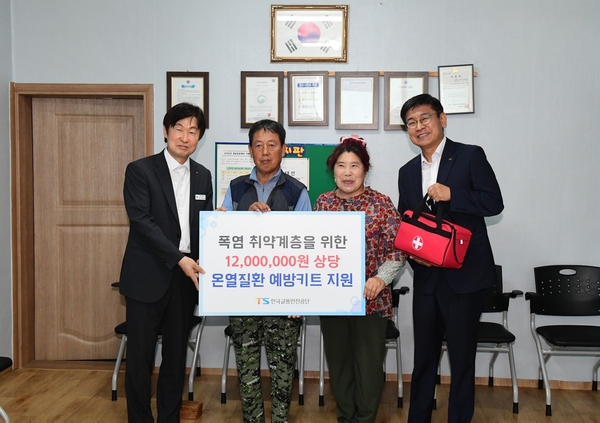 한국교통안전공단은 지난 30일 김천시를 방문해 폭염으로 인한 건강 피해가 우려되는 취약 계층을 위해 폭염 예방 키트200세트(1200만원 상당)를 기탁했다.