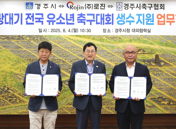 주낙영 시장은 “폭염 속에서도 선수들이 안전하게 경기를 치를 수 있도록 생수를 지원해 주신 ㈜로진에 감사드린다”며 “화랑대기를 통해 전국의 축구 꿈나무들이 건강하게 성장할 수 있도록 시에서도 적극 지원하겠다”고 말했다.