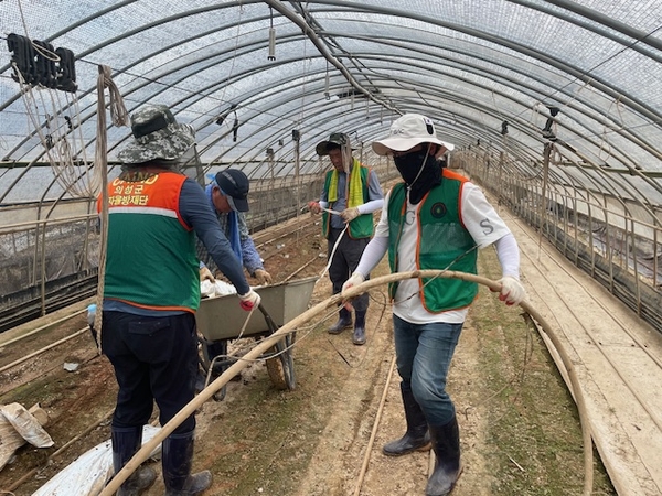 이날 무더운 날씨 속에서도 단원들은 피해 농가의 조속한 일상 회복을 돕기 위해 온 힘을 다했다.
