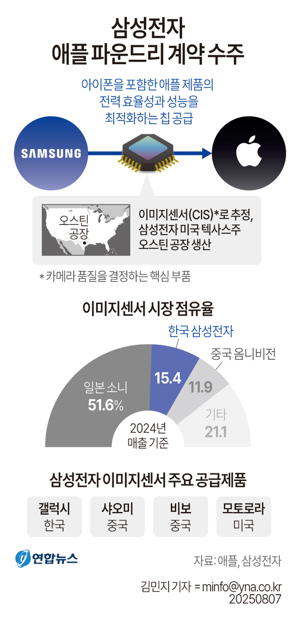 이 칩에는 이미지센서를 포함한 고성능 부품이 적용되며, 삼성전자와의 협력은 미국 내 공급망 구축을 강화하려는 애플 전략과도 맞물려 있다.