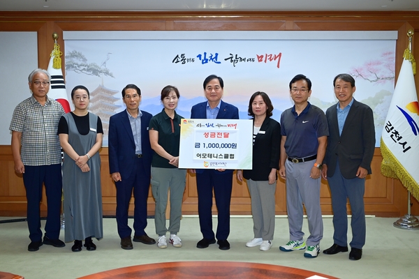 어모테니스클럽은 지난 6일 김천복지재단에 저소득층 및 복지 사각지대에 놓인 이웃들을 돕기 위해 성금 100만 원을 기탁했다.