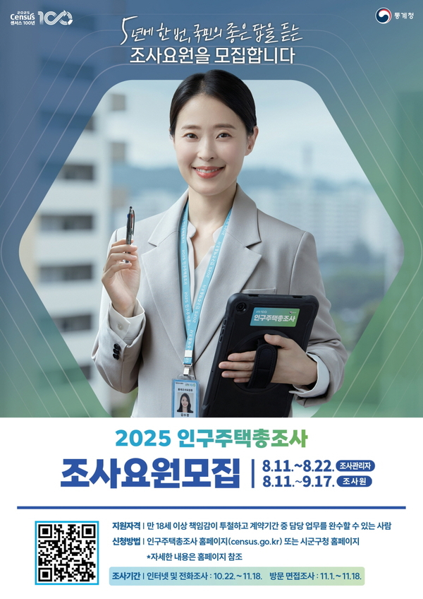포항시가 오는 11월 실시되는 2025년 인구주택총조사를 앞두고 조사요원을 모집한다.