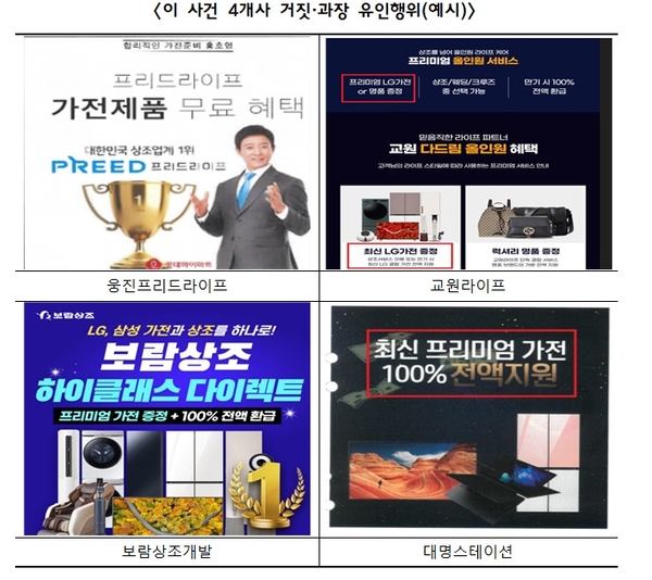공정위는 10일 웅진프리드라이프, 보람상조개발, 교원라이프, 대명스테이션이 2021년 1월부터 올해 6월까지 냉장고·에어컨 등 고가 가전을 무상 제공하는 것처럼 홍보하며 소비자를 유인했다고 밝혔다.