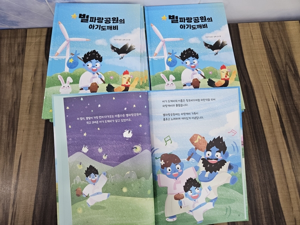 이번 동화책은 별파랑공원의 ‘파랑깨비 오두막집’에 사는 아기도깨비의 모험을 그린 것으로, 달토끼체험장, 바람정원 등의 다양한 소재를 담아 가족의 소중함을 느낄 수 있도록 창작됐다. 대상은 4~5세 아동이며, 글씨체는 자체 개발한 영덕해파랑체를 사용했다.