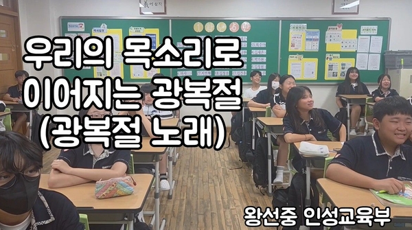 참여 영상 분야 최우수상 수상작은 왕선중 학생들과 교사가 함께 참여한 ‘우리의 목소리로 이어지는 광복절’로, 그 시대를 살아간 사람들의 희생과 용기를 기억하며 평화로운 오늘을 지켜가겠다는 다짐과 함께 광복절의 의미를 되새기고 그 정신을 이어나가고자 하는 마음을 영상에 담아 노래했다.