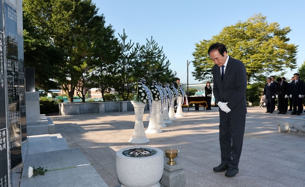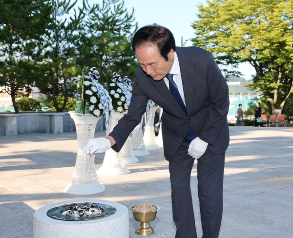 | ▲ 김주수 군수가 분향하고 있다. | ||