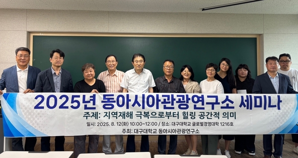이응진 대구대 동아시아관광연구소 소장(호텔관광경영학부 교수)은 “지역 재해 극복의 역사는 단순한 과거 사건이 아니라, 우리 공동체가 자연과 공존하며 살아가는 방법을 배우는 소중한 자산”이라며 “이번 세미나는 팔공산 대홍수와 의성 산불 같은 사례를 관광·교육·치유 콘텐츠로 활용하는 방안을 논의하는 뜻깊은 기회가 됐다”고 말했다.