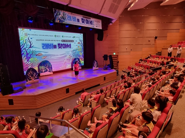 | ▲ 18일 달성군청 대강당에서 열린 대구시교육청의 ‘지역기반 유아교육·보육 혁신지원사업’중 어린이 뮤지컬 ‘래비를 찾아서’공연 장면. 대구시교육청 제공 | ||