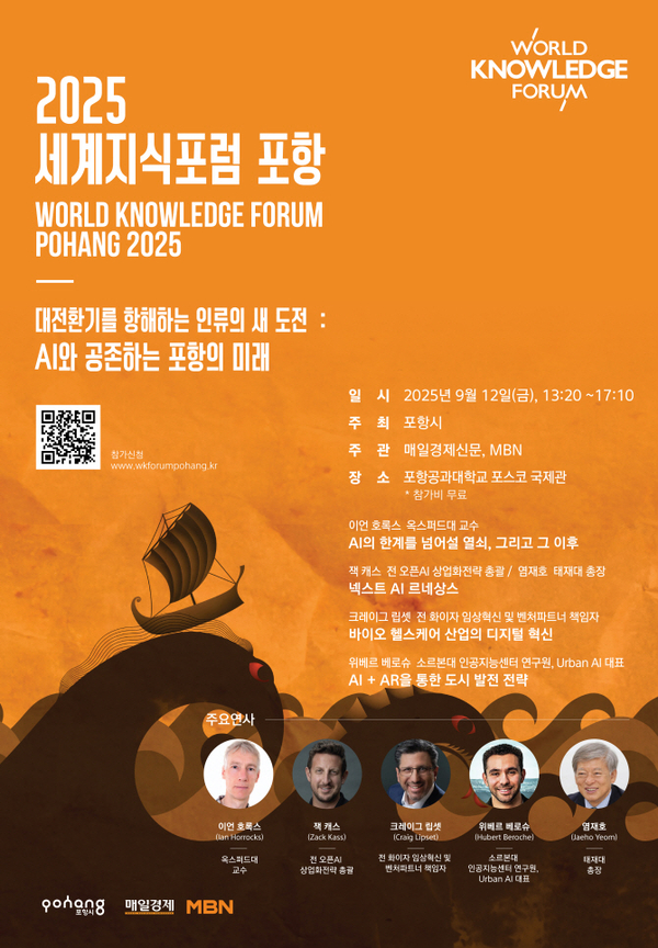이번 포럼은 시민 누구나 무료로 참석할 수 있으며, 사전등록은 오는 9월 10일 오후 5시까지 공식홈페이지(wkforumpohang.kr)에서 할 수 있다.